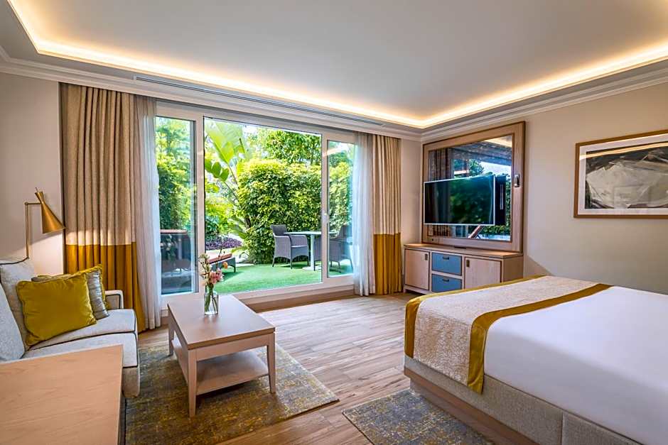 The twin/double room's kitchen, which features a refrigerator and a microwave, is available for cooking and storing food. The spacious twin/double room provides air conditioning, a seating area, a terrace with garden views as well as a private bathroom featuring a shower. The unit offers 2 beds.